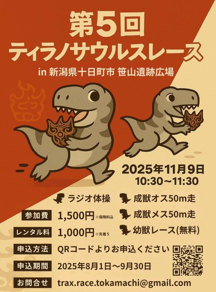 開催日時 11月9日(日) 10:00〜(ティラノサウルスレースは10:30〜)